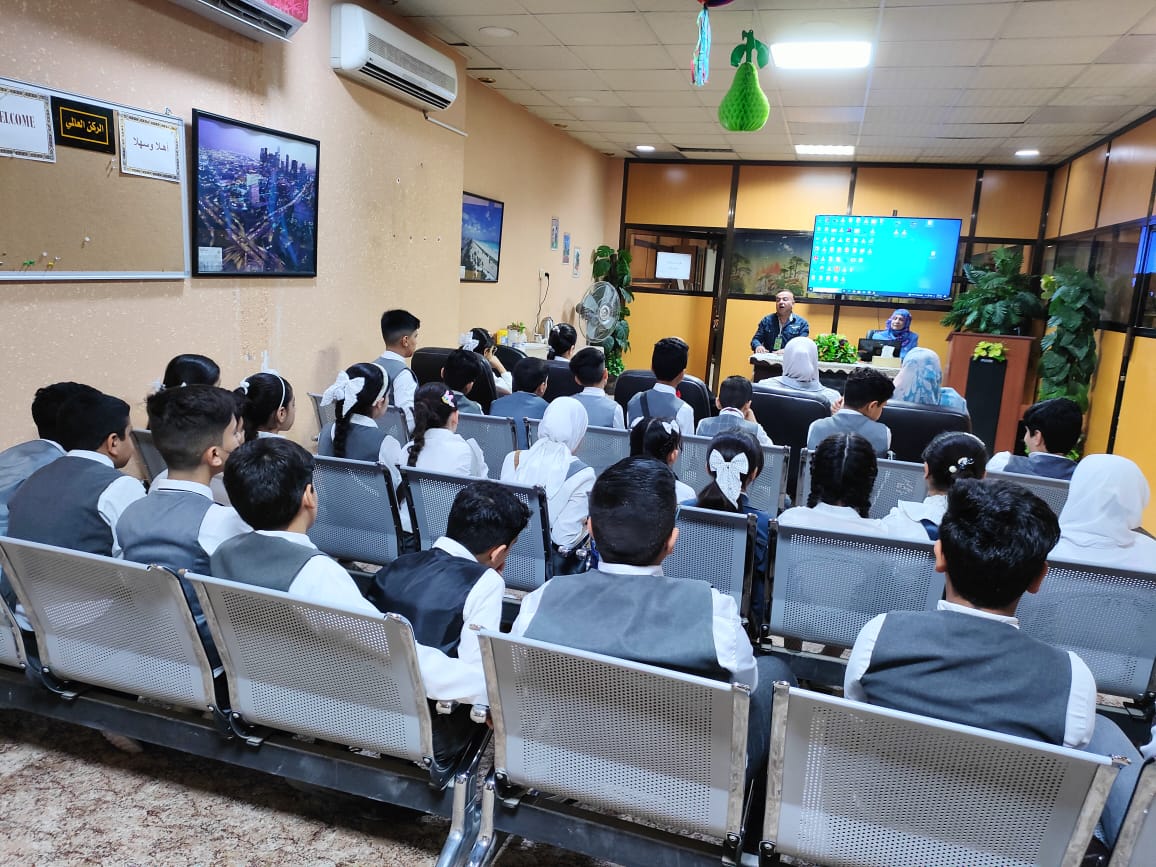 The General Secretariat of the Central Library at the University of Basra received a delegation of students and teachers of Makarem Al-Akhlaq National Primary School as part of a school scientific trip.