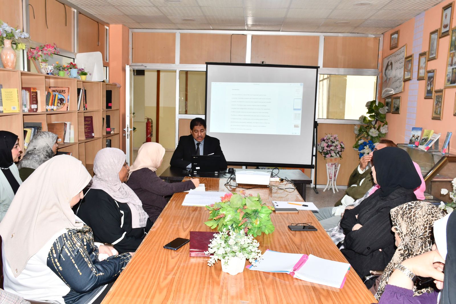 The Central Library Secretariat organized a training workshop entitled "Library Terminology in English: Towards Effective Professional Communication in the Library Environment." The workshop aimed to empower participants to develop clear and precise professional communication skills that contribute to improving administrative and service performance. Presented by Assistant Lecturer Samir Mohammed Jassim, the workshop addressed the importance of enhancing staff skills in using commonly used library terminology in English, given its crucial role in developing professional communication within the library environment and with academic institutions. The workshop witnessed significant interaction from the attendees, who offered insightful comments and questions that enriched the discussion, and expressed their appreciation for the practical aspects of the training.