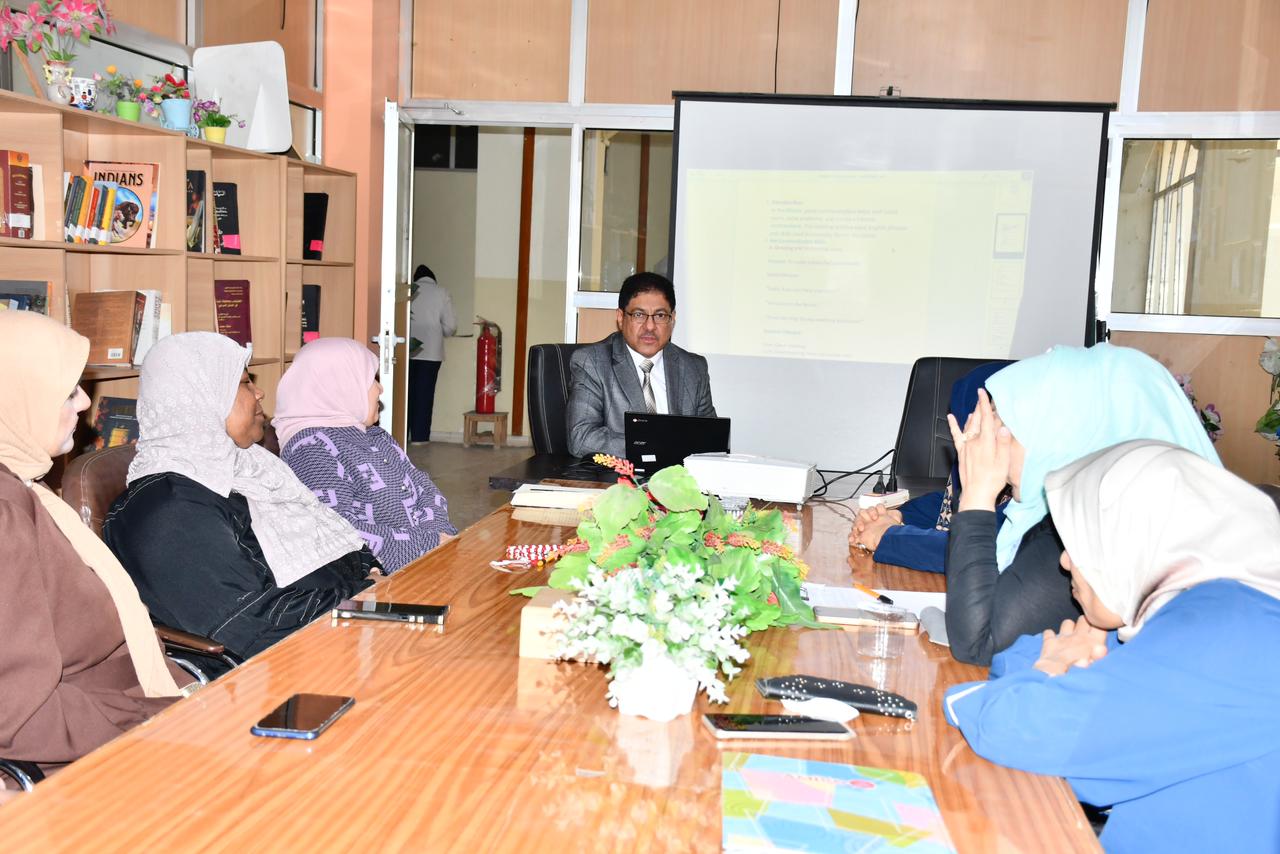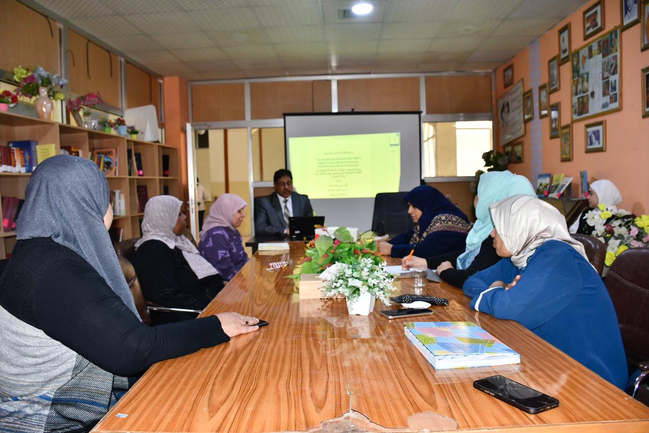 The Central Library at the University of Basra organized a workshop entitled "Conversation and Communication Skills in English for Effective Professional Communication in the Library Environment." The workshop aimed to develop the efficiency and abilities of library staff in using English in daily work situations and to enhance their professional communication skills with users. The workshop, presented by instructor Samir Mohammed Jassim, covered conversation techniques and communication skills exercises, with practical applications from the library work environment.